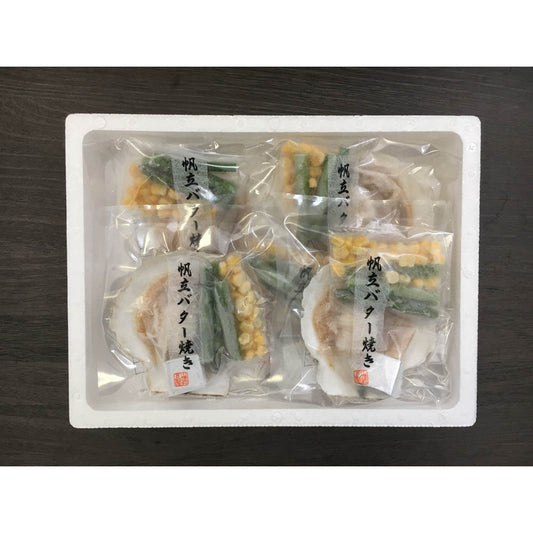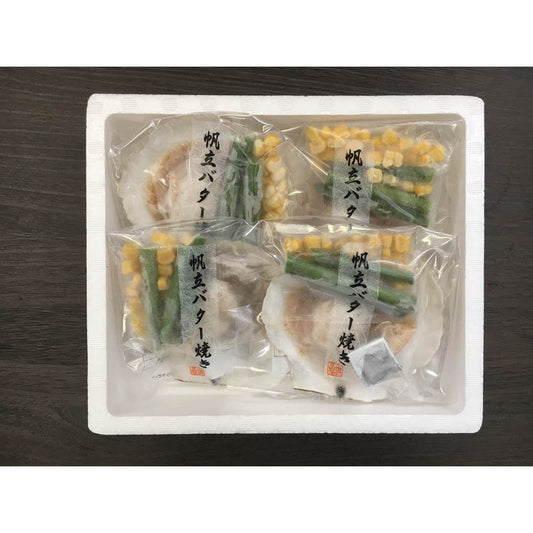 北海道産 帆立バター焼き4セット【帆立片貝4枚・コーン・アスパラ・バター】