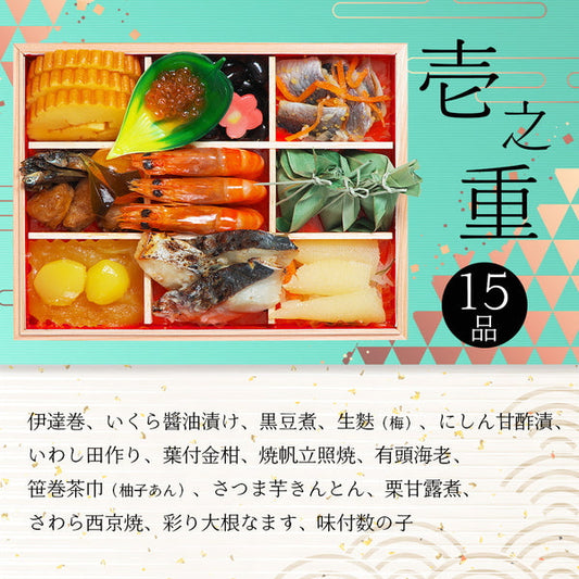 京都『一献うえ原』上原 真治監修 和風おせち「鞍馬」三段重(53品目)