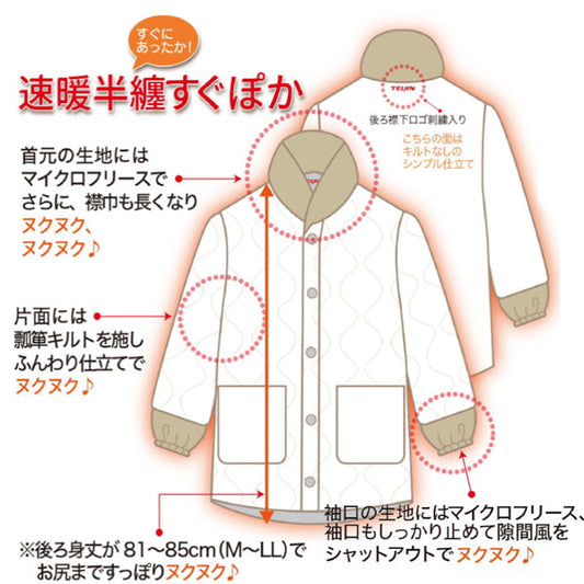 TEIJIN 帝人 速暖半てんすぐぽか プラス【L-LL/リバーシブル・チャコールグレー×キャメル】