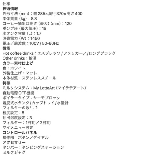 【ギフトカード】デロンギ アクティブ エスプレッソ・カプチーノメーカー トゥルー ホワイト