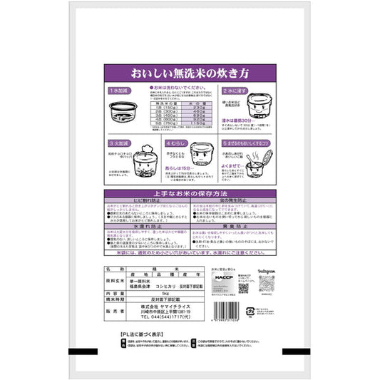 無洗米 福島県会津産コシヒカリ 5kg×3袋(合計15kg)