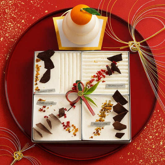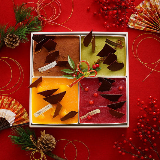 shirokane sweet TOKYO スクエアスイーツおせち 4種Mixスイーツアソート (オレンジショート、ミロワールフランボワーズ、ミロワールショコラ、ミロワールピスターシュ)