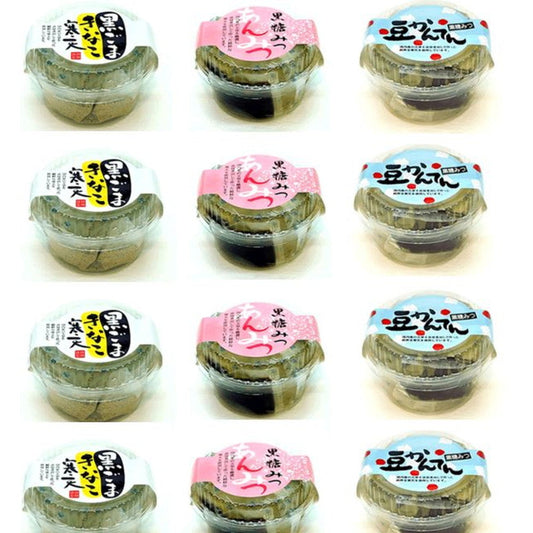 神奈川 横須賀太洋 甘味詰め合せ12個【豆かんてん黒糖みつ、みつ黒糖みつ、黒ごまきな粉寒天各4個】