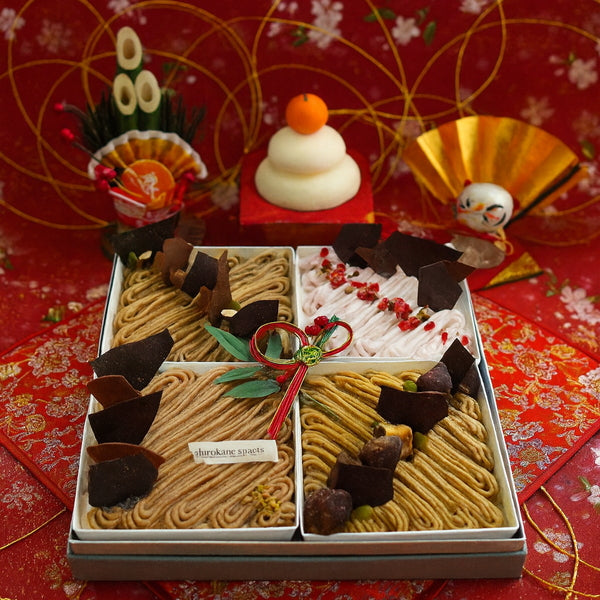 shirokane sweet TOKYO スクエアスイーツモンブランおせち 4種モンブランアソート (山江栗、和栗、ショコラ、べりー)