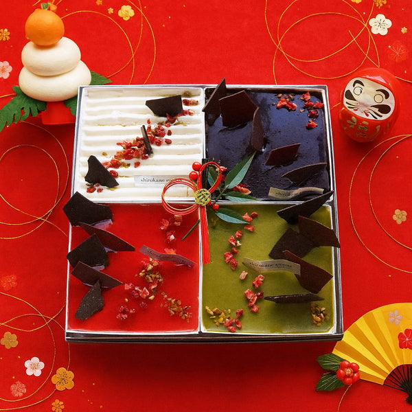 shirokane sweet TOKYO スクエアスイーツおせち 4種Mixスイーツアソート (ベリーショート、ミロワールフランボワーズ、ミロワールショコラ、ミロワールピスターシュ)