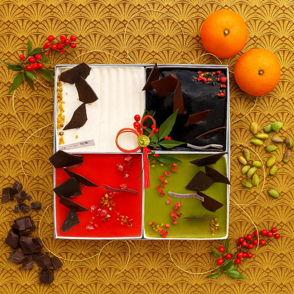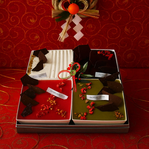 shirokane sweet TOKYO スクエアスイーツおせち 4種Mixスイーツアソート (オレンジショート、ミロワールフランボワーズ、ミロワールショコラ、ミロワールピスターシュ)