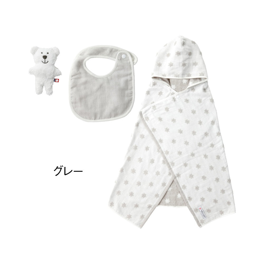 ■素材:バスポンチョ・スタイ=綿100%、にぎにぎ=(表地)綿100%・(中わた)ポリエステル100%