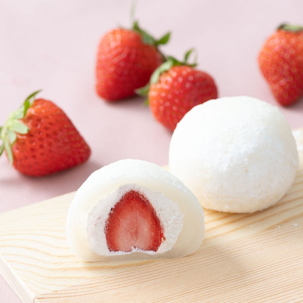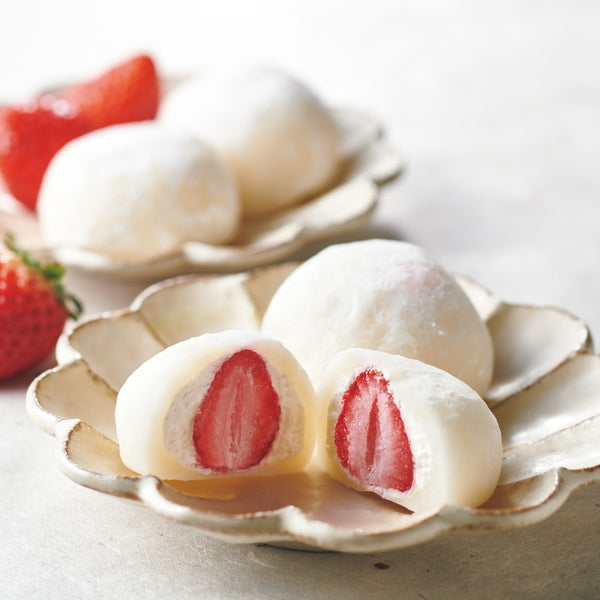 ■もち粉とうるち粉をブレンドしたやわらかく伸びのある大福で、ホイップクリームと福岡県産あまおうを1粒包み込みました。やわらかいお餅の食感といちごの酸味、やさしい甘さのクリームが1つになった味わいのバランスをお楽しみください。