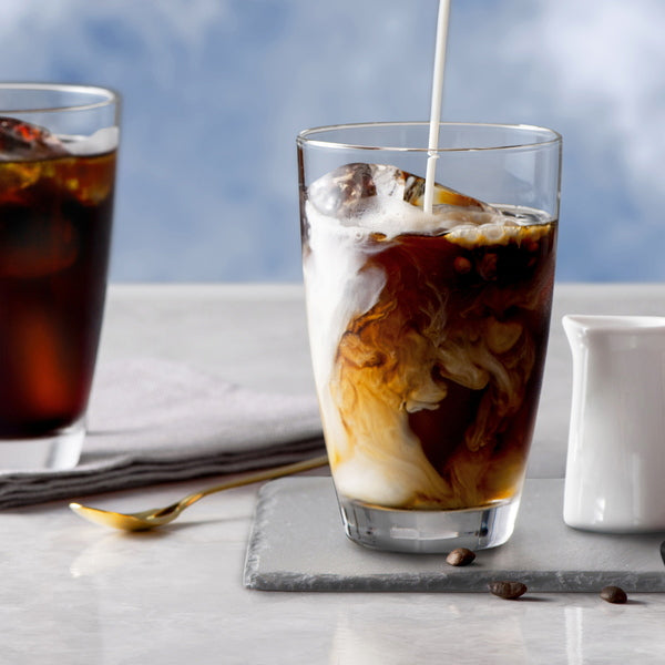 ■昭和9年創業の大阪「丸福珈琲店」のこだわりは、 “濃厚でコク深い味わいだがあと味のすっきりとした珈琲”。 まずはすっきりストレートで丸福珈琲店ならではの味わいを楽しんで、 たまには牛乳をたっぷり入れて優しい甘みの濃厚なカフェオレを。 こだわりを守り続ける丸福珈琲店がお届けする、オリジナルブレンドのアイスコーヒーと、 牛乳で割って楽しむ甘みあるカフェオレベースのセットです。