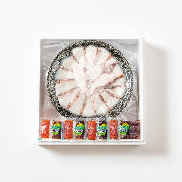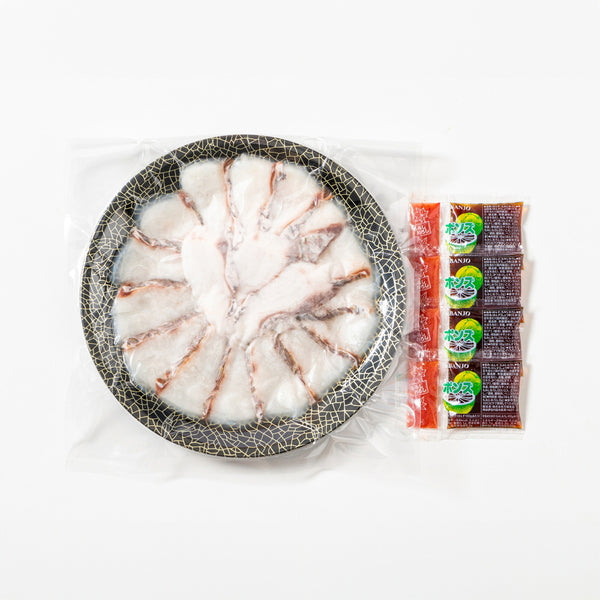 ■商品内容:天然真鯛しゃぶしゃぶ用切身200g(22㎝皿盛)、ぽん酢・もみじおろし×各4