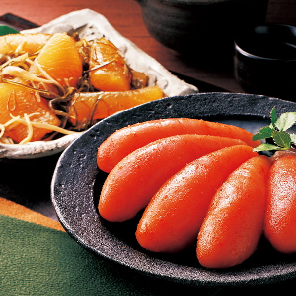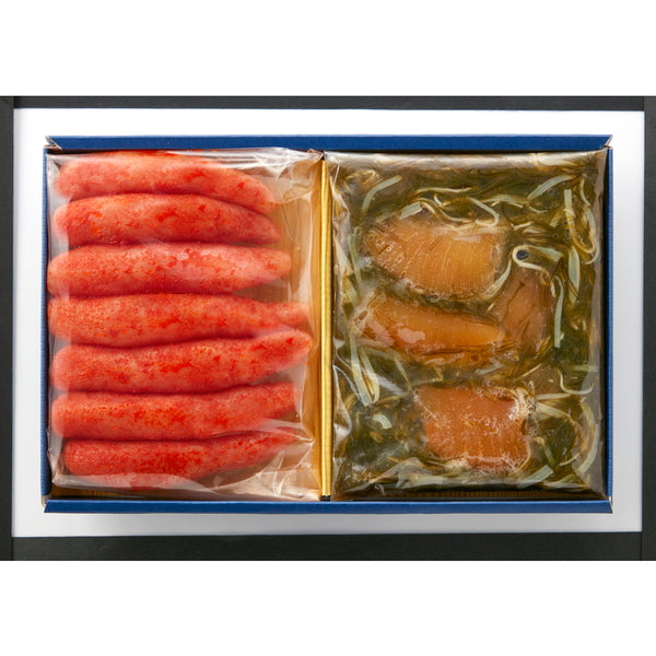 ■ぴりっとした辛さに、味わい深さを楽しめる博多の味「辛子明太子」と、食感の良い数の子・国産の昆布・風味のあるいかを特製醤油だれに漬込んだ「数の子松前」の詰合せです。