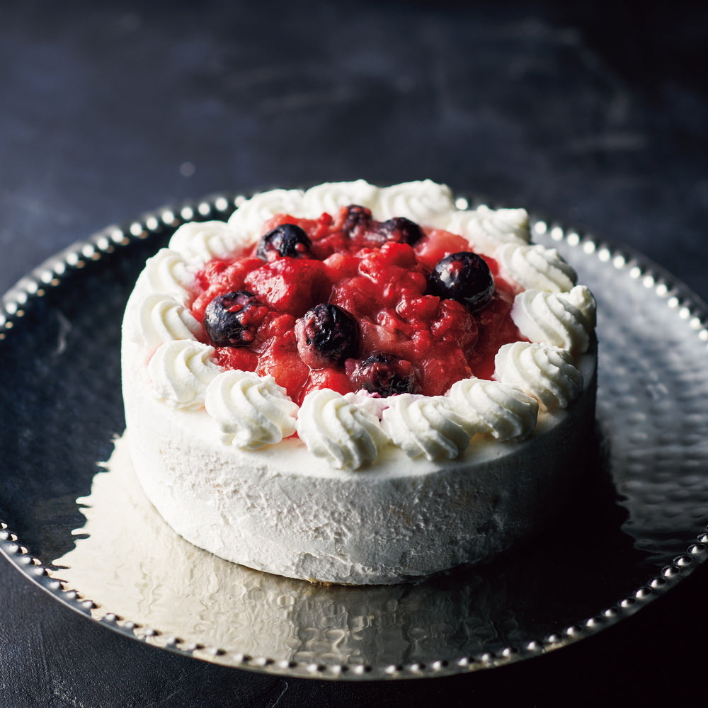 ■ケーキをつややかに彩るのは、福岡で栽培されるブランド苺「あまおう」を贅沢に使ったコンフィチュール。果肉・果汁ごと煮詰めた甘酸っぱい味わいが、ケーキの甘みと相性抜群。華やかなホールケーキはお祝いの席にもぴったりです。