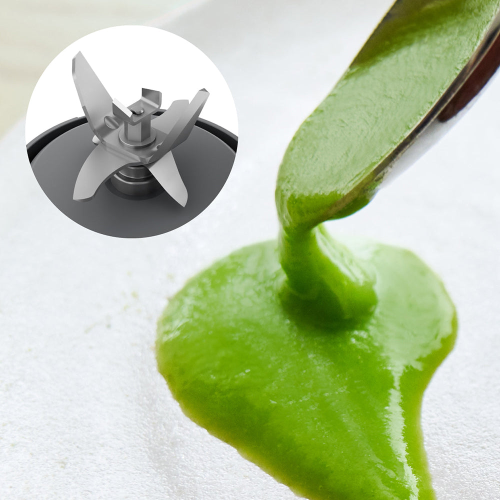 強靭な8枚刃の力で仕上がりもきめ細やかでなめらかに。スープやソースの口当たりに差がでます。