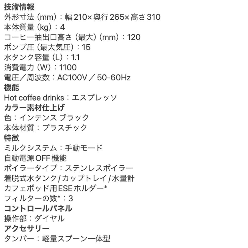 ■商品内容:アクティブ エスプレッソ・カプチーノメーカー インテンス ブラック