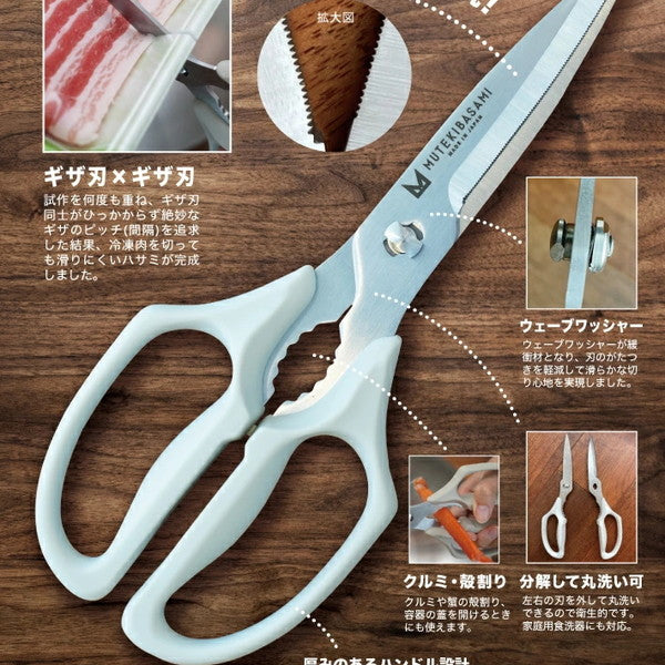 ■衝撃の切れ味!Wギザ刃で食材をホールド 冷凍肉にも食い込む!ストレスフリーのキッチンバサミ!