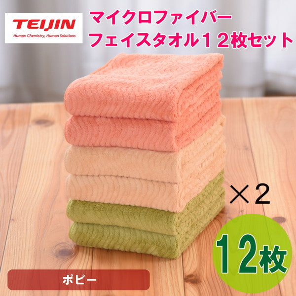 テイジン 帝人 マイクロファイバー フェイスタオル(3カラー/各4枚)【計12枚/ポピー】