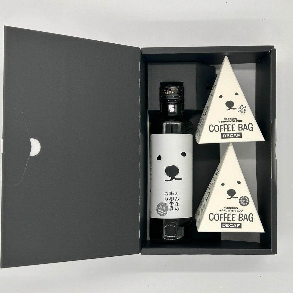 【ギフトカード】デカフェ専門イノセントコーヒー シロクマカフェ デカフェセット(コーヒーバッグ2種・コーヒー牛乳のもと1本)
