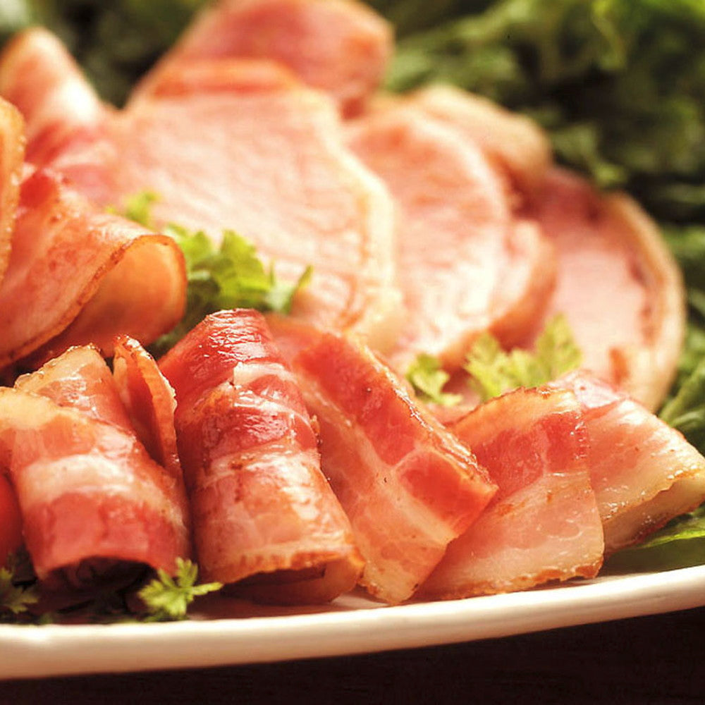 ■約90年前から牧場のスローライフの中で楽しんできたベーコン。4週間に及ぶ「氷温での長期自然漬込」と、2年かけて乾燥した薪を使う「薪・炭火による燻煙」という製法によって作り上げます。ITI(世界味覚審査)では5年連続で最高評価の三ツ星を受賞。ボロニアタイプソーセージは大粒の粗びき肉と多種にわたるスパイスを配合したクラシックな製法のソーセージ。