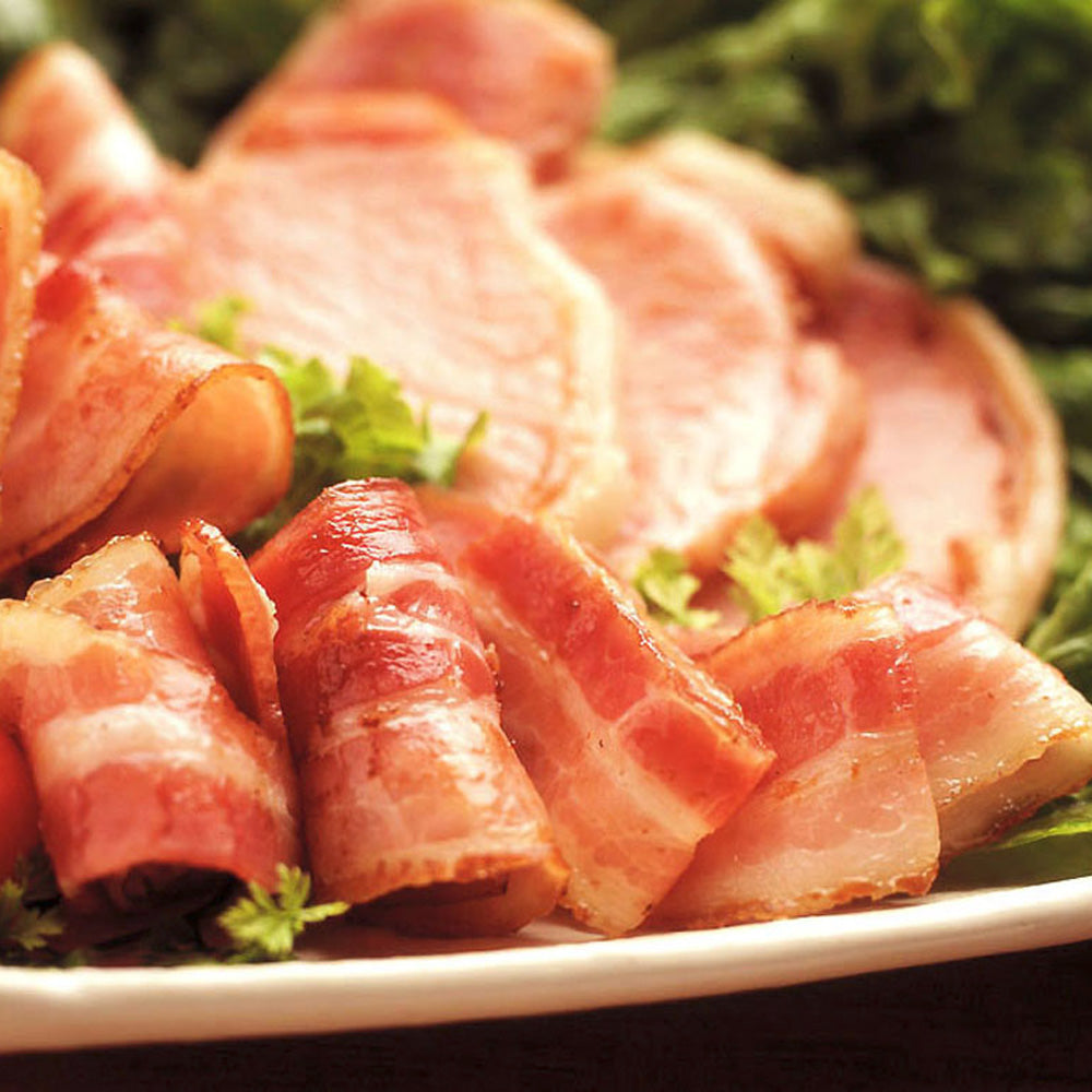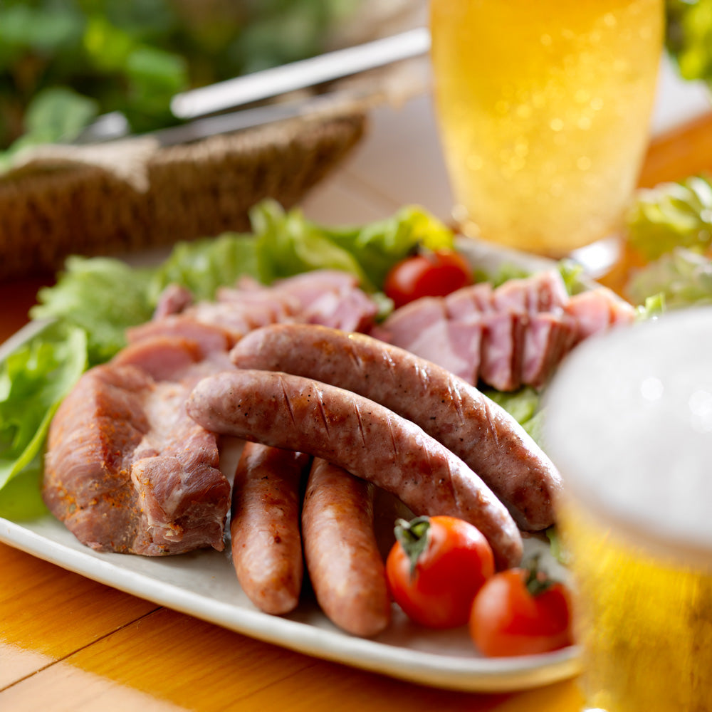 ■約90年前から牧場のスローライフの中で楽しんできたベーコン。4週間に及ぶ「氷温での長期自然漬込」と、2年かけて乾燥した薪を使う「薪・炭火による燻煙」という製法によって作り上げます。ITI(世界味覚審査)では5年連続で最高評価の三ツ星を受賞。ボロニアタイプソーセージは大粒の粗びき肉と多種にわたるスパイスを配合したクラシックな製法のソーセージ。