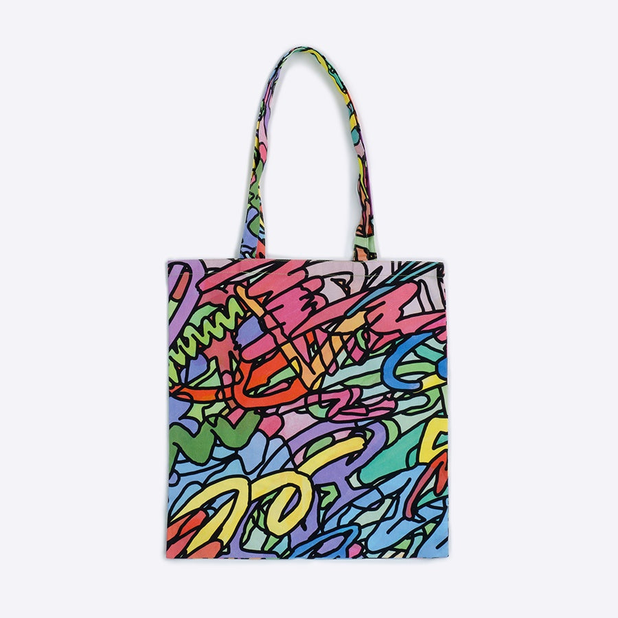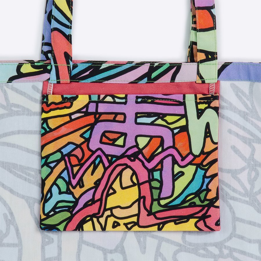 アーティストの個性あふれる作品と一緒にお出かけできるアートなサブバッグ。ボリュームのあるアウターでも肩に掛けやすいハンドル長めのデザインで、通勤通学、お出かけ、エコバッグといろいろなシーンで使えます。