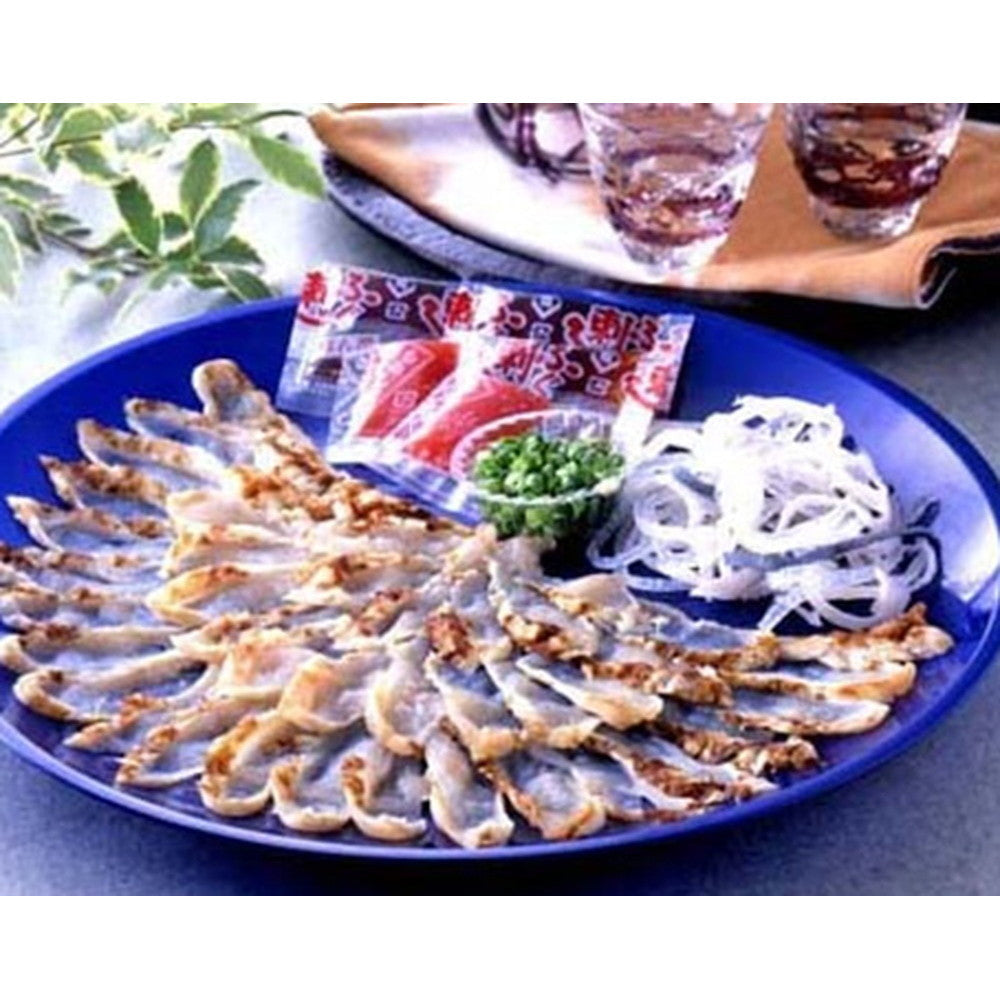 ■内容量:まふぐタタキ100g、とらふぐ皮10g、ぽん酢10g、もみじおろし2g、乾燥ねぎ2g