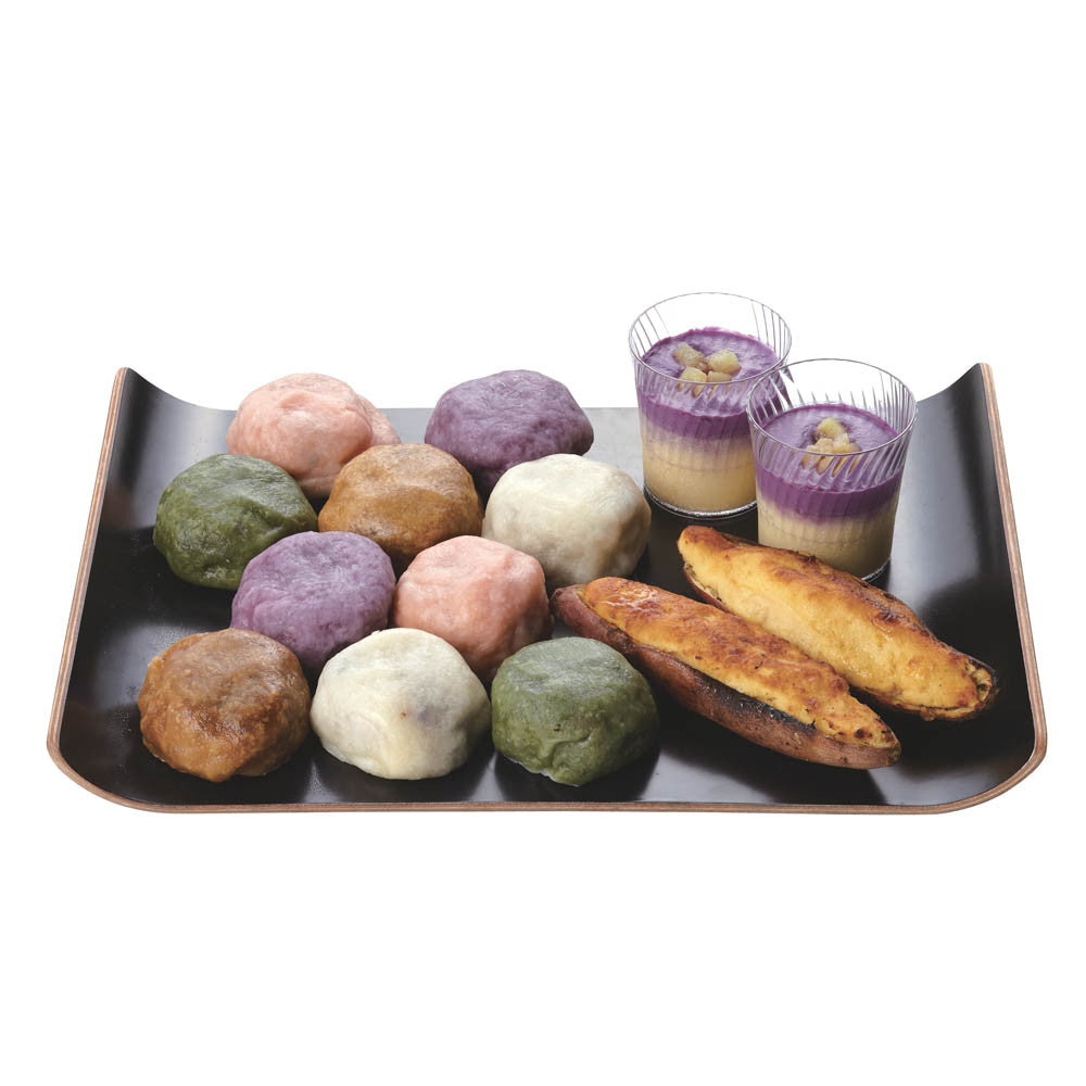 ■内容量:焼芋ぷりん120ml×2個、スイートポテト90g×2個、いきなり団子80g×10個(プレーン、紫いも、よもぎ、黒糖、さくら各2個)