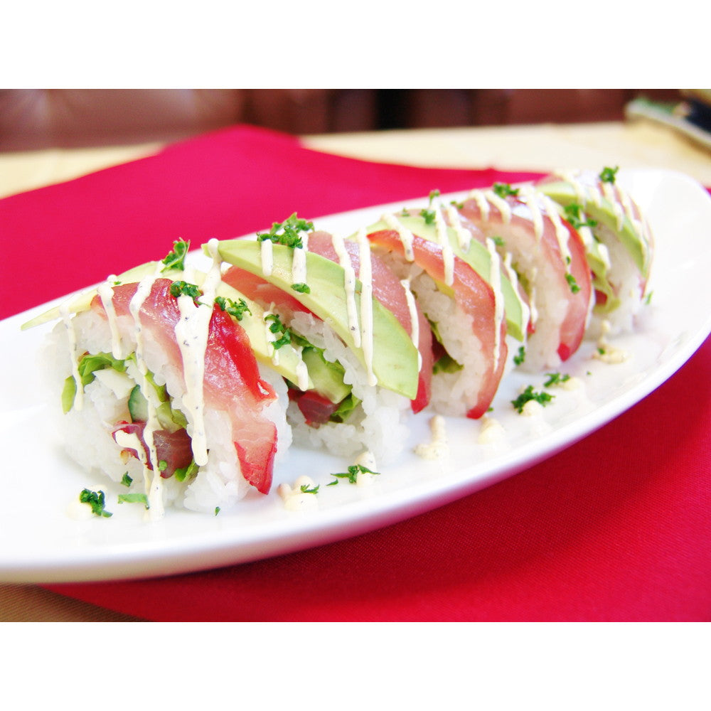 鮪を生ハム仕立てに仕上げスライスしました。燻の薫りとしっとりしたまぐろの生ハムを野菜と一緒にお召し上がりください。