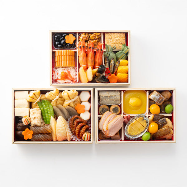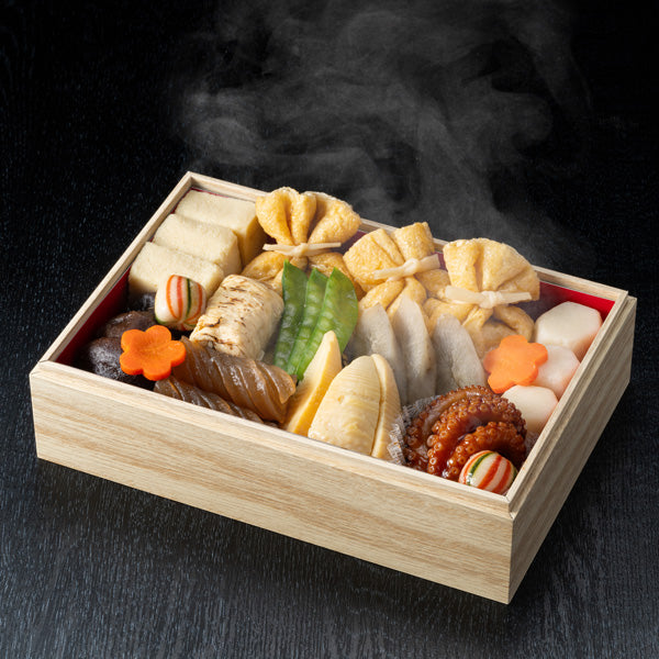 ■昭和3年、京料理「たん熊」は、曳き船で有名な京都高瀬川のほとりに誕生しました。戦後も茶道の家元をはじめとして、谷崎潤一郎、吉井勇先生等の文人墨客、その他のお引き立てを得、順調なあゆみを続けています。四季の風趣を凝らし真心の伝統を受け継いだのが「たん熊北店」の京料理です。素材を生かし、滋味あふれる味付けに仕上げた和風おせちです。素材の味わいを生かし、見た目も鮮やかに盛りつけました。三段重のお煮しめは温めて、より美味しくお召し上がりいただけます。