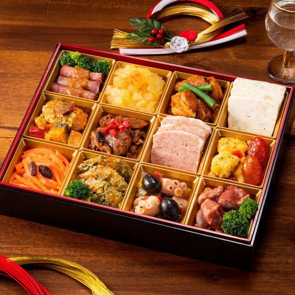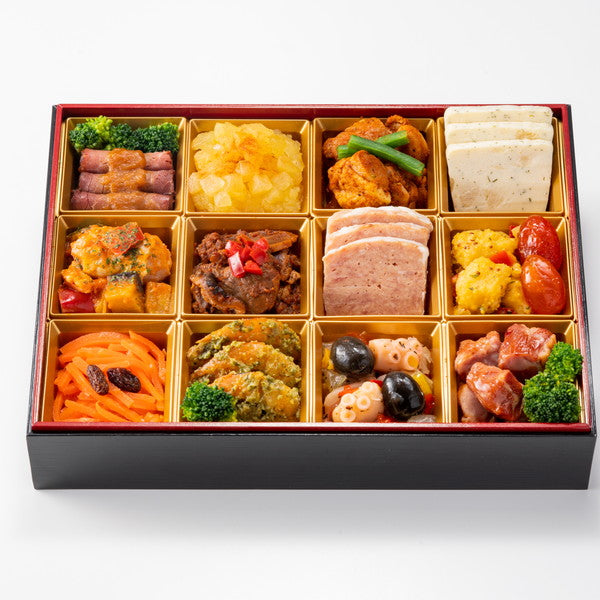 ■創業1879年(明治12年)、美味求心の想いを受け継ぐ老舗の洋食レストラン。創業当時はロシア料理とパンのお店として函館の市民に愛され、明治・大正の香りを今に伝える伝統あるレストランとして今なお高い人気を誇る。スパイスグリルチキンやビーフシチューなど五島軒の世界観をお重の中で表現しました。りんごのきんとんはアップルパイをイメージしてシナモンをまぶしています。