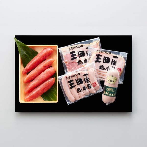 ■人気の三田屋総本家ハムと明太子のセット。 三田屋総本家のハムは、ハムに適した豚肉のみを職人が目利きにより選び、創業当時から変わらぬ製法で作り続けています。辛子明太子は、昔ながらの製法でほとんどを手作業で行っています。