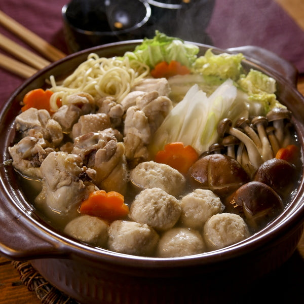 ■コクと歯応えが自慢の岐阜県産『奥美濃古地鶏』の鍋セットです。カット済みの肉やつみれ、スープはもちろんの事、〆の麺までついており、お好みの野菜をご用意頂くだけで、最後までお楽しみいただけます。肉・つみれはもちろん岐阜県産地鶏「奥美濃古地鶏」を使用、麺は明治34年創業・岐阜県飛騨市にある高山ラーメン製造の老舗「老田屋」の中華麺を使用。スープには、飛騨高山の老舗麹店の塩麹を使用した「塩麹スープ」です。