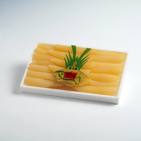 ■綺麗な形のものを選りすぐった塩数の子。パリッとした食感と繊細な旨さが特徴です。箱に綺麗に一本ずつ並べてあり、贈答用としてもおすすめです。
