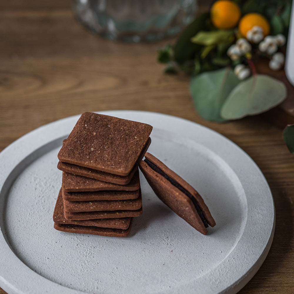 ■東京・表参道に本店を構える、はちみつ専門店MY HONEY のギフトセットです。甘さははちみつだけ。お砂糖・添加物・乳製品・卵・小麦粉は不使用。1枚ずつ手作りで仕上げた罪悪感のないショコラサンドです。生はちみつとカカオだけで作られたフィリングは濃厚なのに口溶けはなめらか。はちみつの優しい甘さとビターなカカオの風味で1枚で大満足の逸品。添加物を使わないクッキーサンドの自然な調和をお楽しみください。