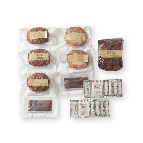 ■昭和6年(1931年)創業、今でも行列ができる洋食屋「たいめいけん」。ローストビーフに最も適しているといわれる内ももは赤身が中心ですが、ちょうど良い割合でさしが入っています。やわらかな肉質がローストビーフの旨味を引き出します。さらに国産黒毛和牛を使用、贅沢な一品です。和牛ハンバーグも肉は黒毛和牛のみを使用。玉ねぎも国産です。チーズハンバーグは国産豚と国産牛肉の合挽ハンバーグ。ドイツ産ゴーダチーズをのせたチーズと肉が程よくからむ逸品です。余計なものは加えず、肉本来の味で勝負。たいめいけん自慢のデミグラスソース付き。湯せんで簡単に本格的な洋食屋の味がお楽しみいただけます。