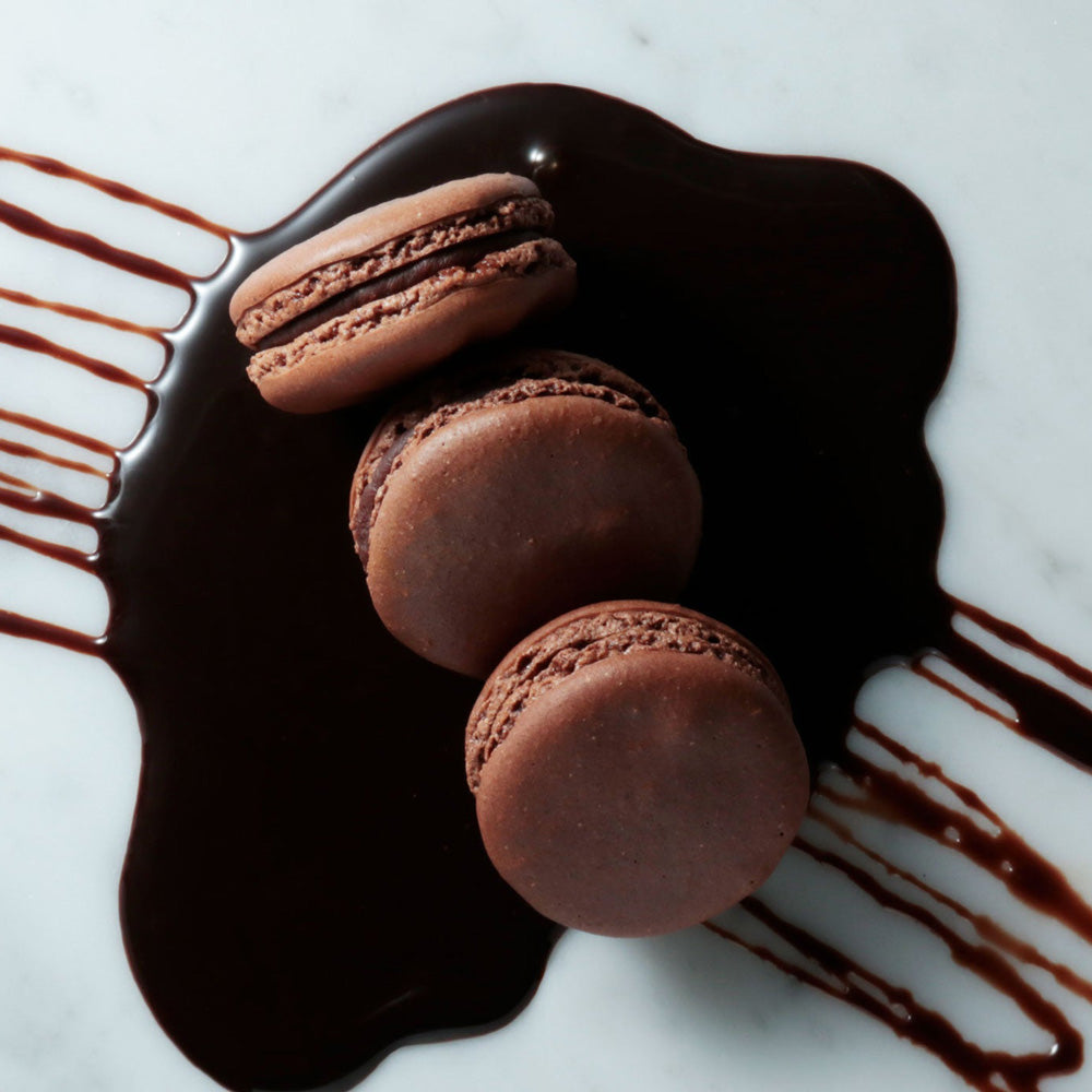 焼き上げたマカロンはすぐに急速冷凍をかけています。マカロンは作られた直後が最も美味しく味わえる時間とされており、お客様自身で解凍していただくことで、出来立てのフレッシュな味わいと食感をお楽しみいただけます。