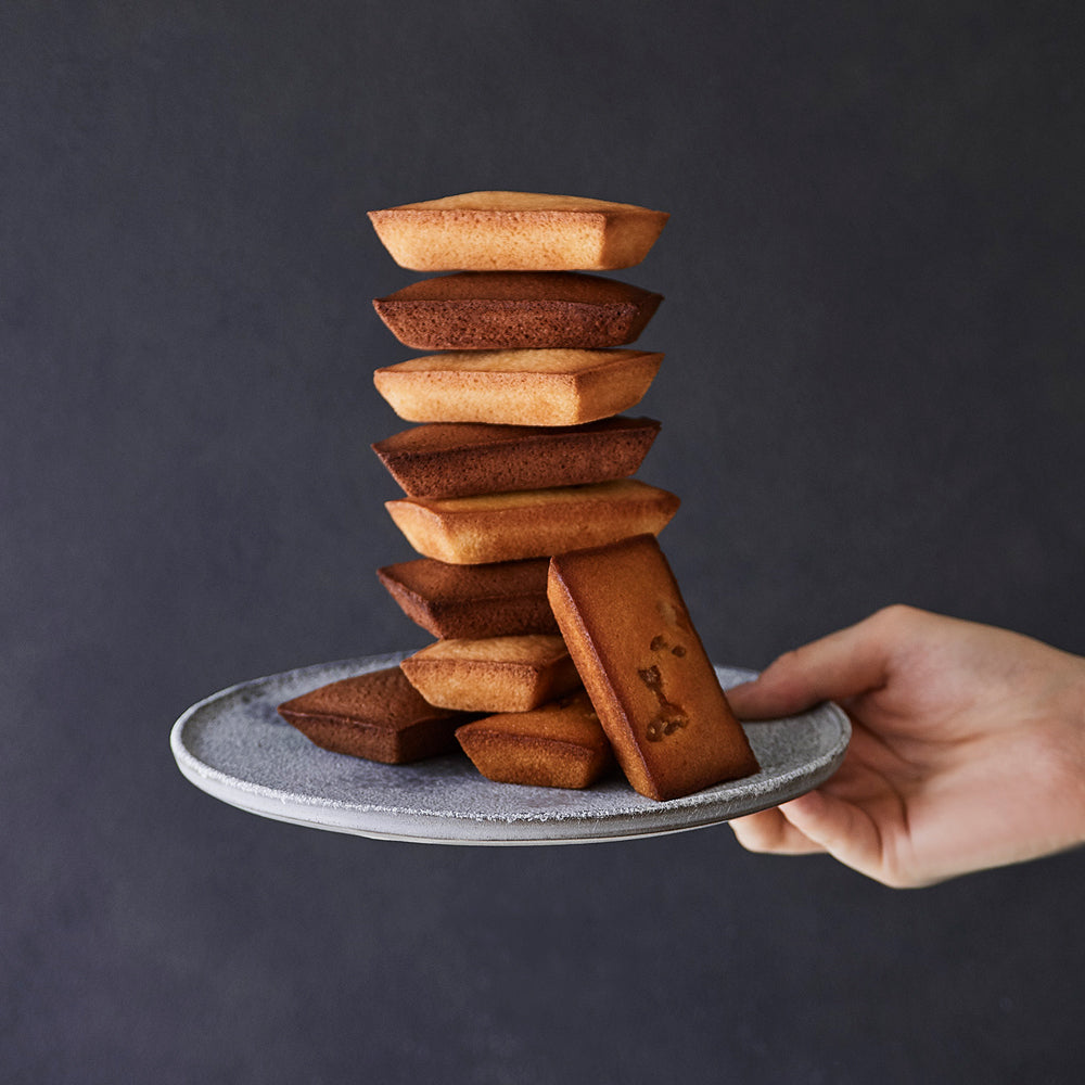 ■アーモンドプードルの風味豊かなナチュール、ガトーショコラのような濃厚な味わいのショコラ、オレンジコンフィを混ぜ込んだオランジュとオランジュキャラメル、合計4種類をたっぷりお楽しみいただける詰合せ。