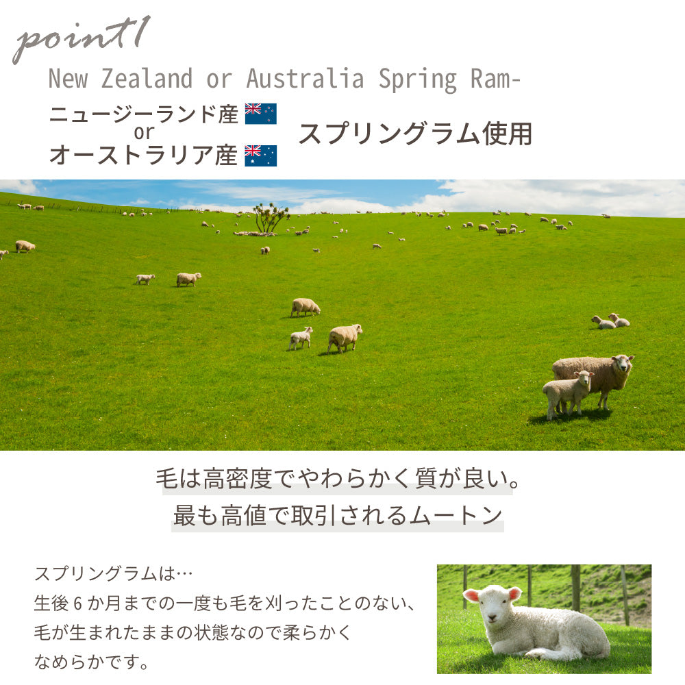 ムートンは毛が密集し、天然のスプリング効果で体圧を分散します。