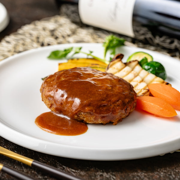 ■ラ・ロシェル坂井宏行シェフのデミグラスソースハンバーグ。しっかり焼き目をつけ中にお肉の旨みを閉じ込めたハンバーグを、じっくり煮込んだ野菜の酸味と甘みが溶け込んだ、こだわりのデミグラスソースと合わせました。湯せんでお召し上がりいただけます。