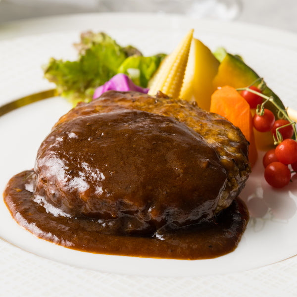 箸で切れるほどふっくらとしていて、黒トリュフと赤ワイン、その他さまざまな具材をバランス良く調合した、オリジナルの黒トリュフソースと相性抜群。湯煎するだけで、片岡シェフの本格ハンバーグをご家庭で簡単にお召し上がりいただけます。