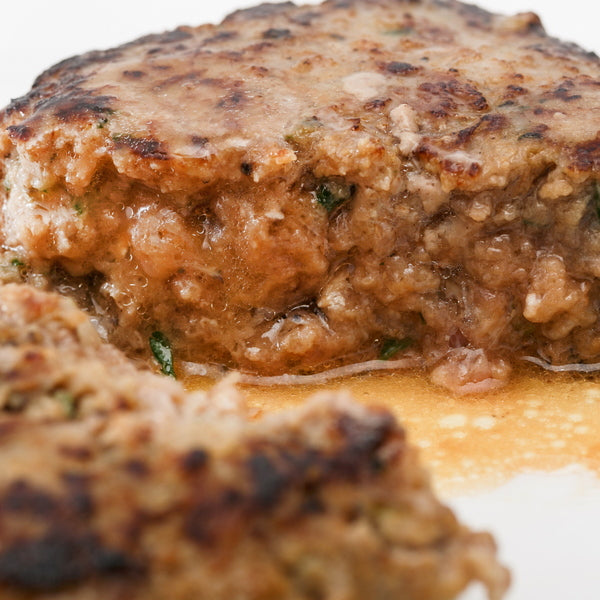 ■予約がとりにくい店ラ・ベットラ・ダ・オチアイ 落合シェフ監修のハンバーグ。牛肉100%のハンバーグに細かく刻んだセロリやパセリを入れ、ブラックペッパーの風味を効かせました。香味野菜の甘みやほのかな香り、ブラックペッパーの刺激が食欲をそそります。香味野菜が苦手…という方でも食べられる、ソース不要のジューシーなハンバーグです。