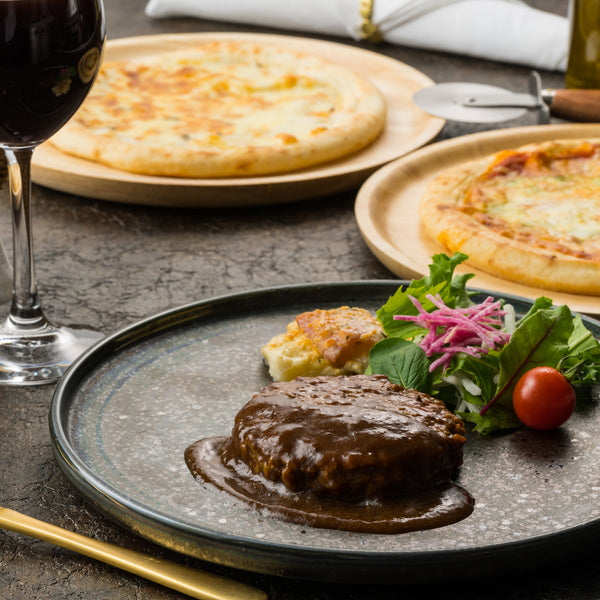 ■西麻布のイタリアン アルポルトの片岡宏之シェフが監修する、4種のグルメ詰合せ。黒トリュフが香るハンバーグに、クリーミーなポテトグラタンと、2種類のピッツァ。多彩なグルメをお楽しみいただけます。