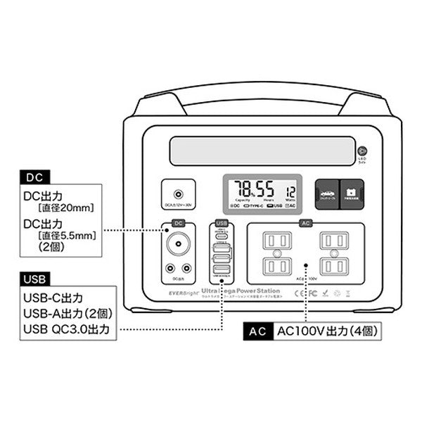 エバーブライト ウルトラメガパワーステーション(ポータブル電源/ポータブルバッテリー)