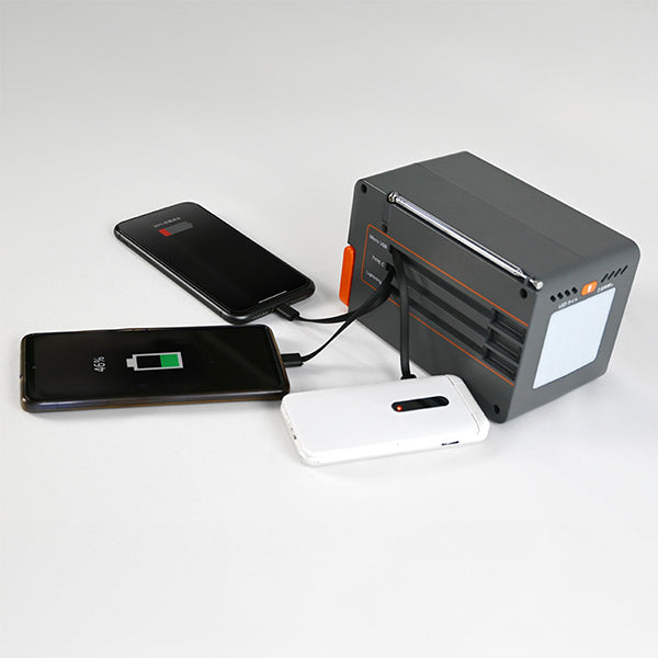 ■大ヒットモデル、メガパワーステーションにワイドFMラジオ+USBケーブル3本内蔵+ 周波数デジタル表示、ソーラーパネル21Wとの新一体型BOX
