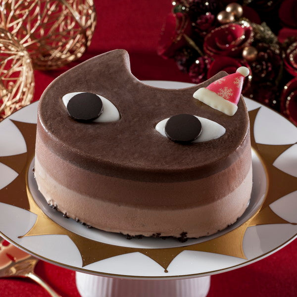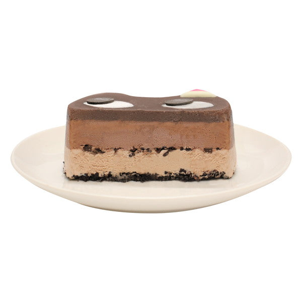 ■猫のかたちが愛らしいアイスケーキ。ビターとミルクの2層のチョコアイスに、食感を楽しめる削りチョコを忍ばせました。