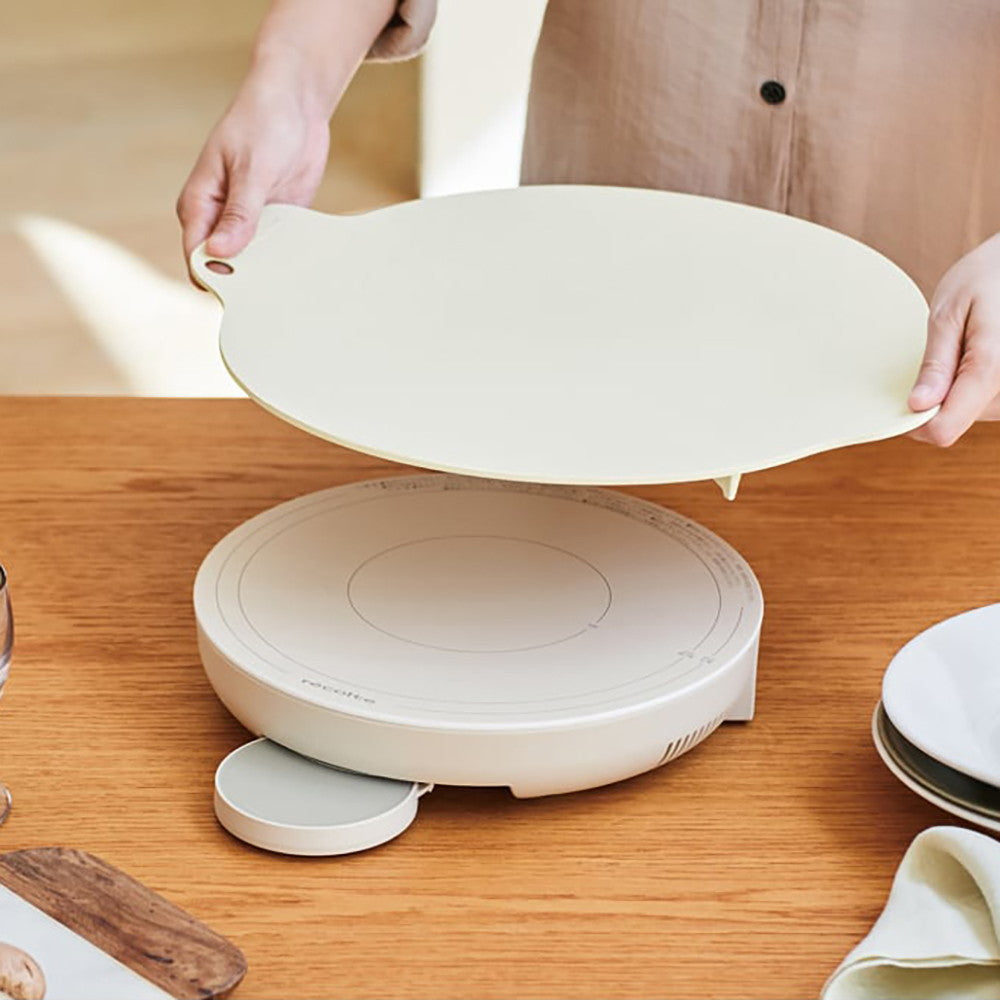 [卓上IHクッキンググリドル]は、新スタイルのホットプレート。調理できる大皿[クッキンググリドルプレート]と円形フォルムの[卓上IHヒーター]をセットにしました。