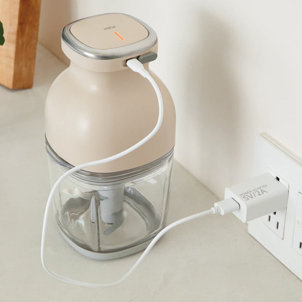 使い方は、食材をカップに入れてプッシュするだけ! シンプルな設計で誰でも使いやすく、お手入れも簡単です。