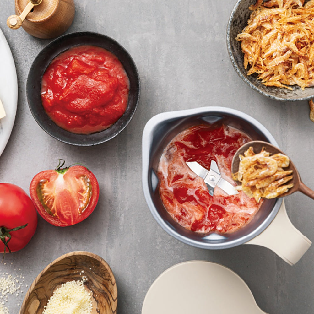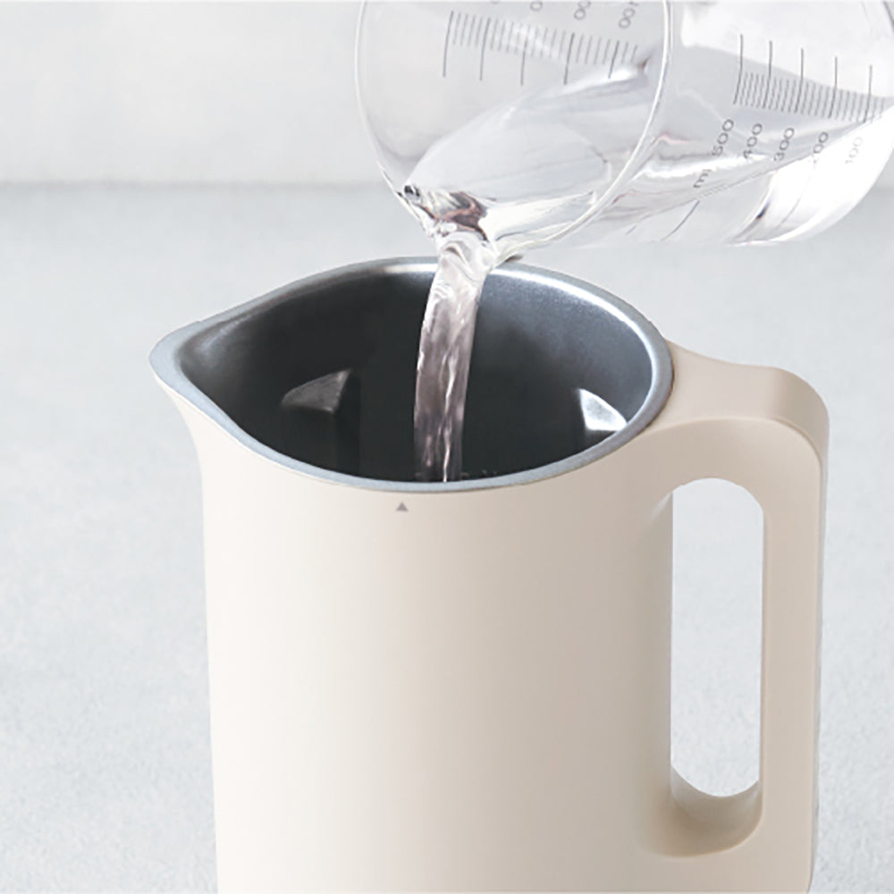 毎日使ってほしいから、家電に見えない佇まいもポイント。場所を取らないスリムサイズでインテリアにすっとなじみ、キッチンはもちろん卓上でも使いやすいデザインです。