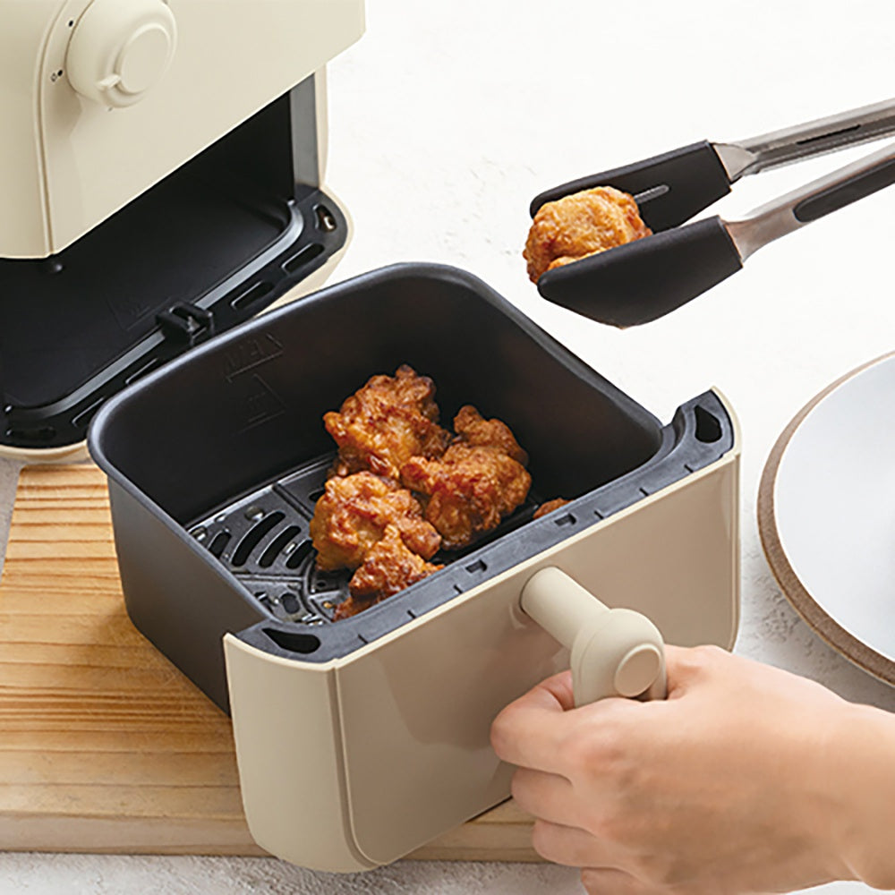 高温の熱風を循環させて食材自体が持つ脂を利用して調理するから、揚げ油は不要。さらに余分な脂も内アミの下に落ちるからカロリーダウン! カロリーが気になって我慢していた揚げ物もヘルシー&簡単調理で出番が増えそうです。