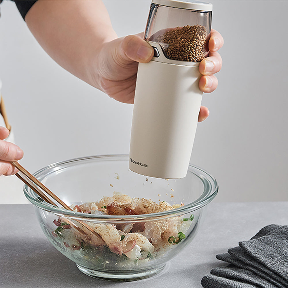和えもの、スイーツ、薬味など、活躍の広いごま。[電動ゴマスリ]を使えば、香り豊かなごまがあっという間に。パッと手にとってすぐ使えるので、ごまがより身近になります。