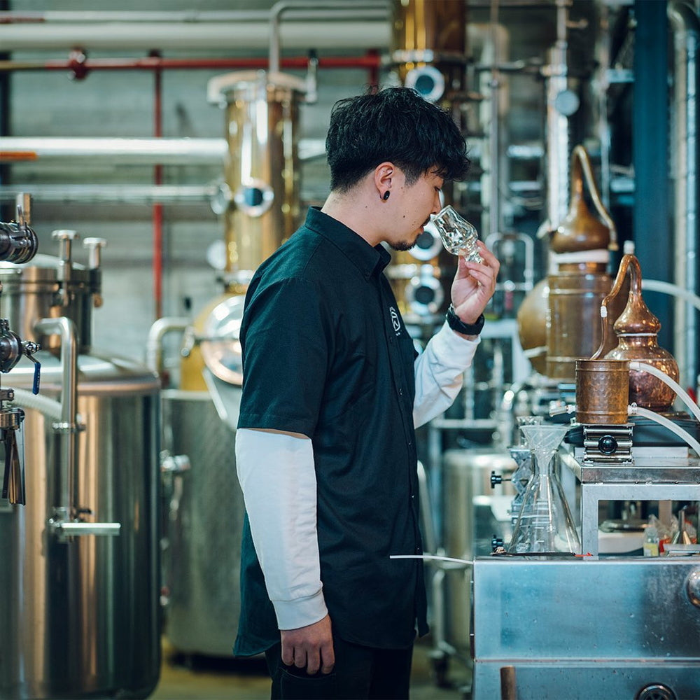 通常、ジンは全てのボタニカルをまとめて蒸溜しますが、「季の美」の製法は非常に独特です。11種のボタニカルを特性に応じて「ベース(礎)」、「シトラス(柑)」、「ティー(茶)」、「スパイス(辛)」、「フルーティ&フローラル(芳)」、「ハーバル(凛)」の6つのグループに分類し、別々に蒸溜した後にブレンドしています。